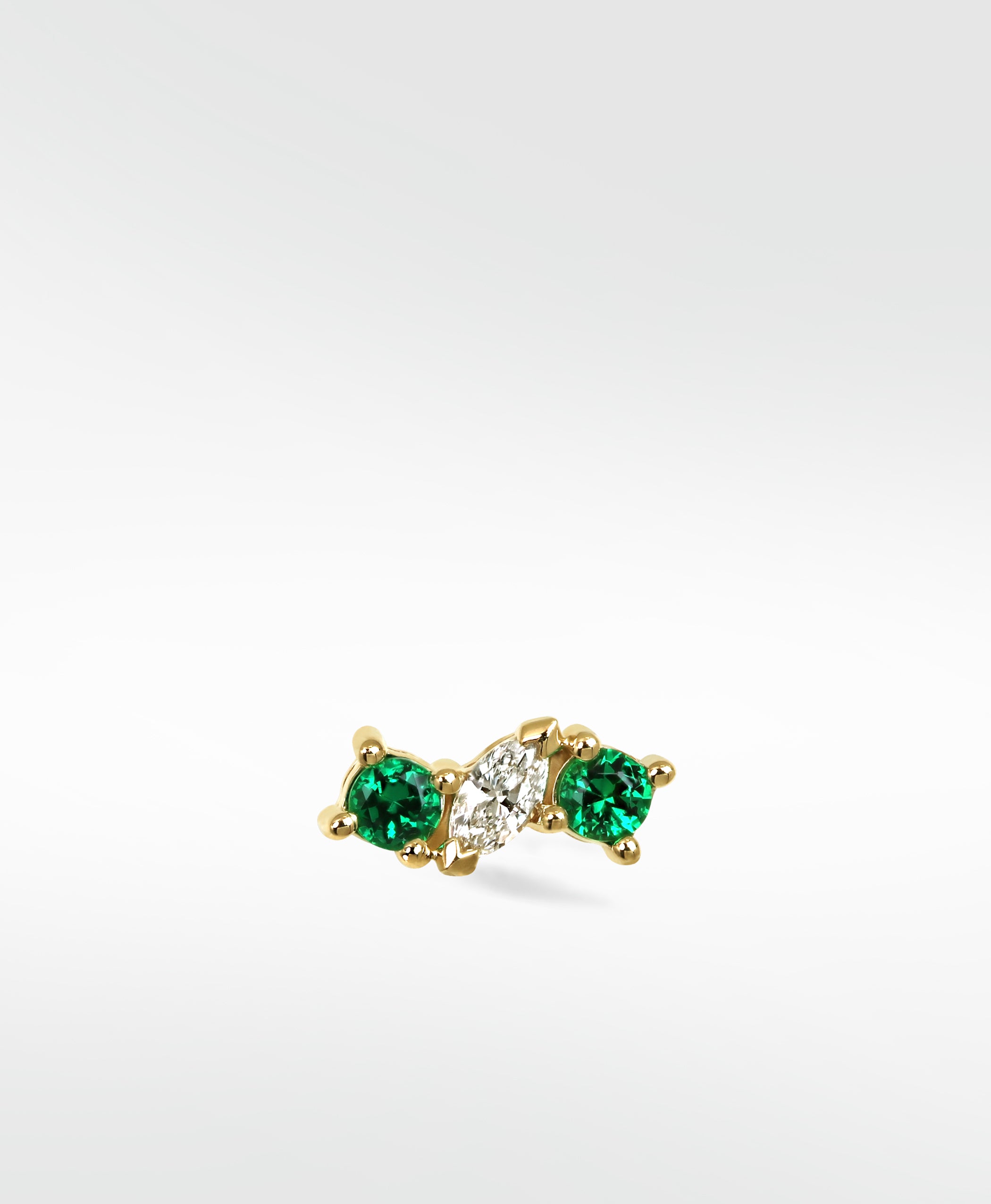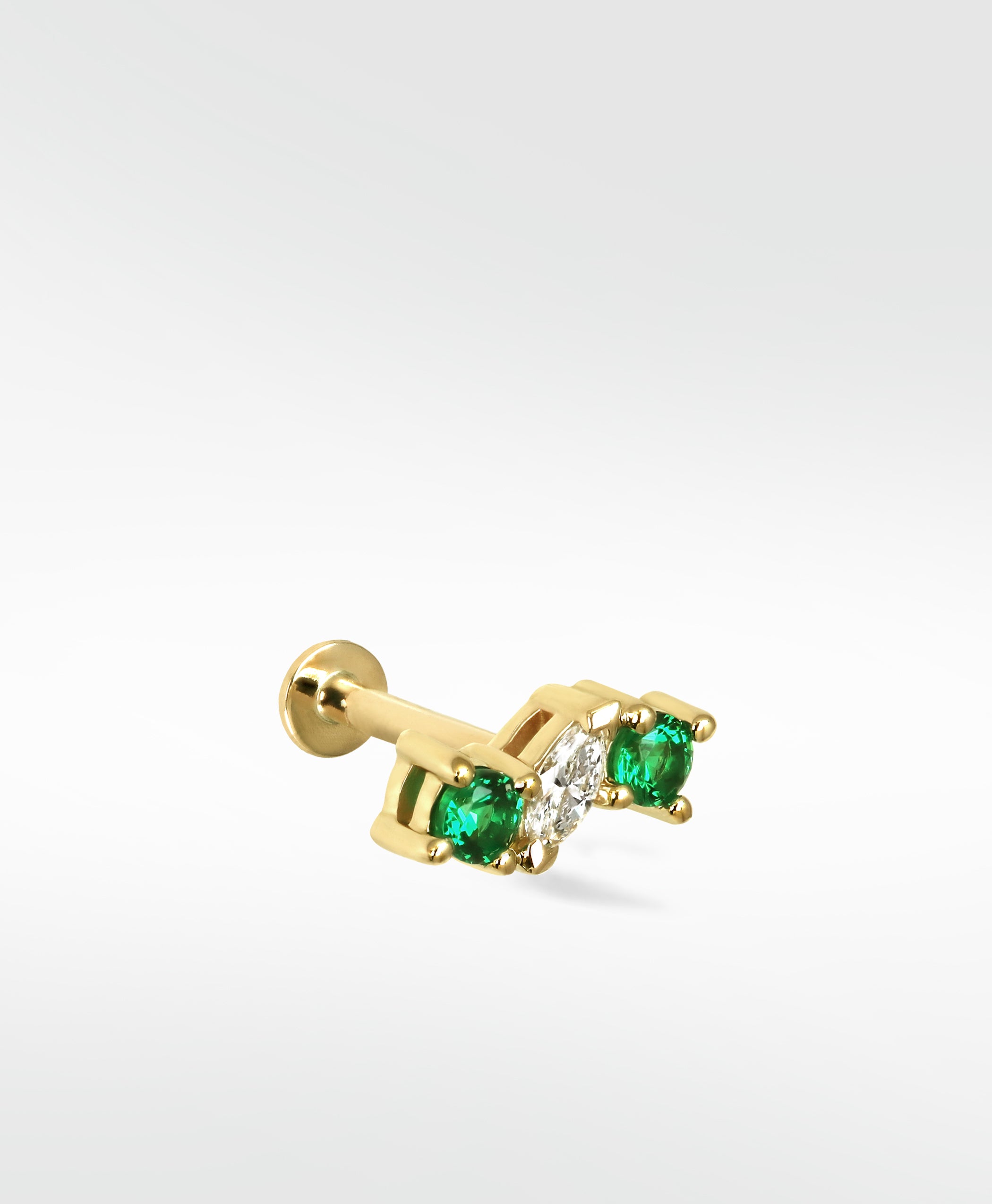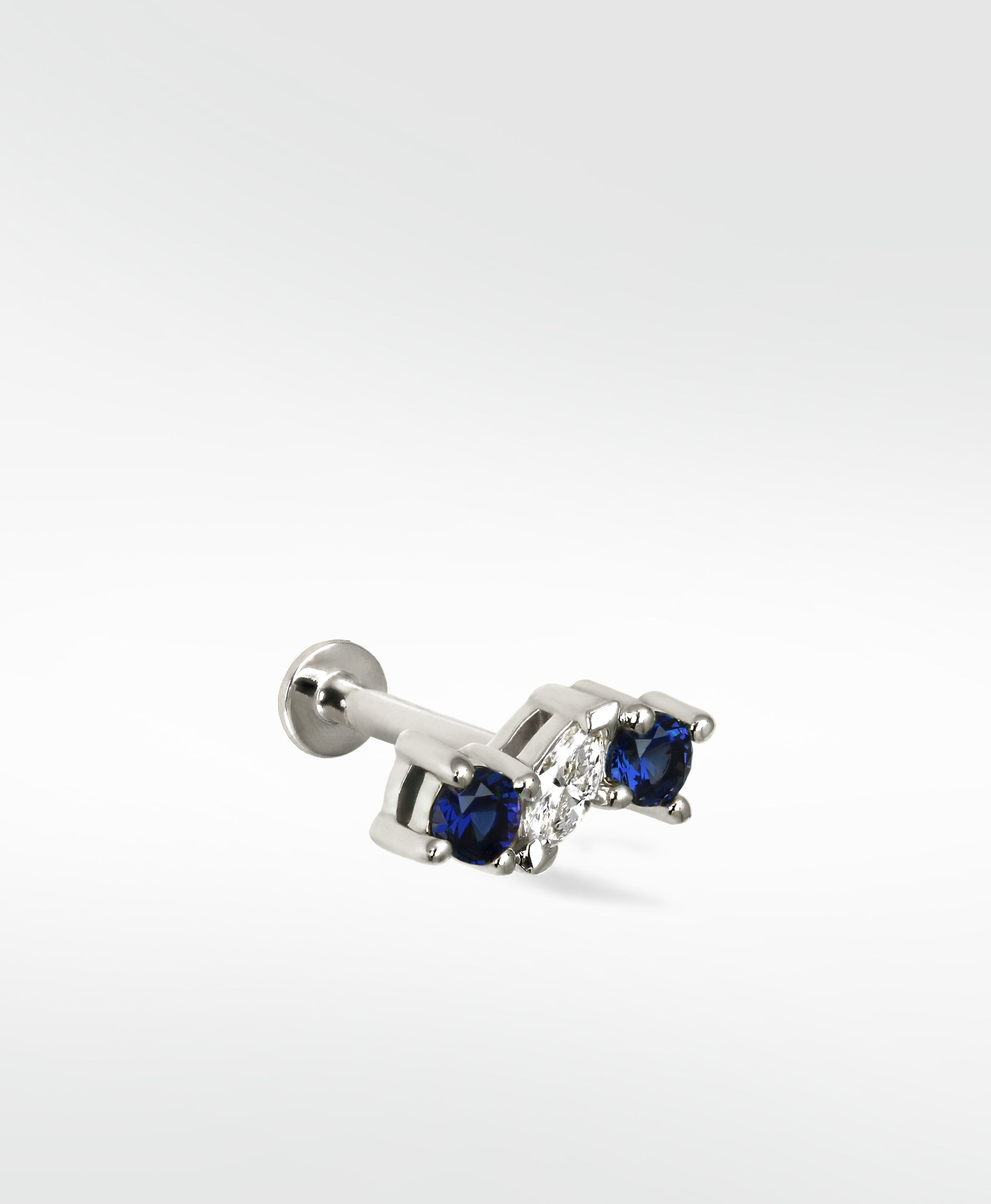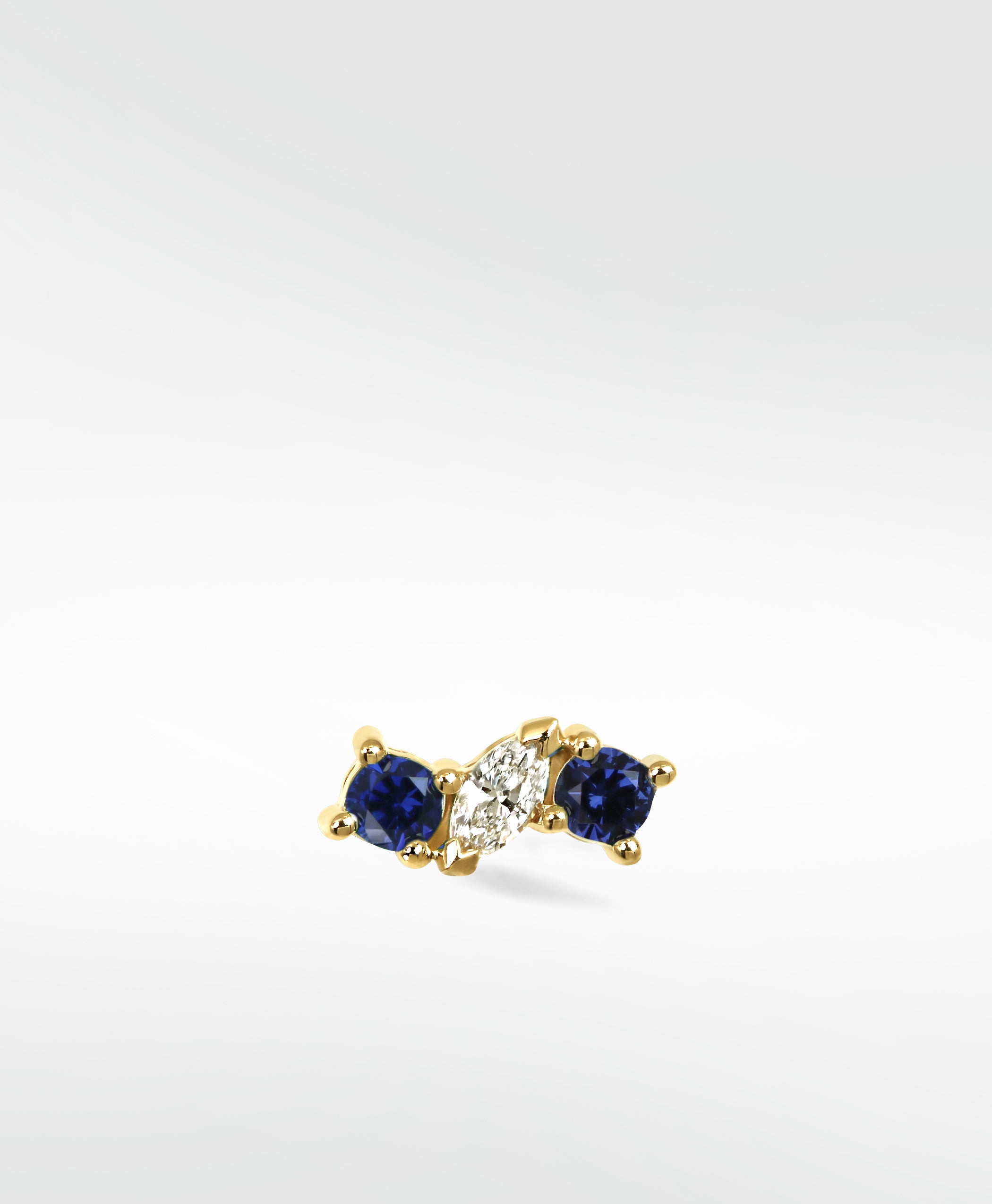 Add a pop of colour and a stunning marquise diamond in centre. The Veto Lux Trio Stud is the perfect piece to stack or wear alone, and is suitable for most areas of the ear.