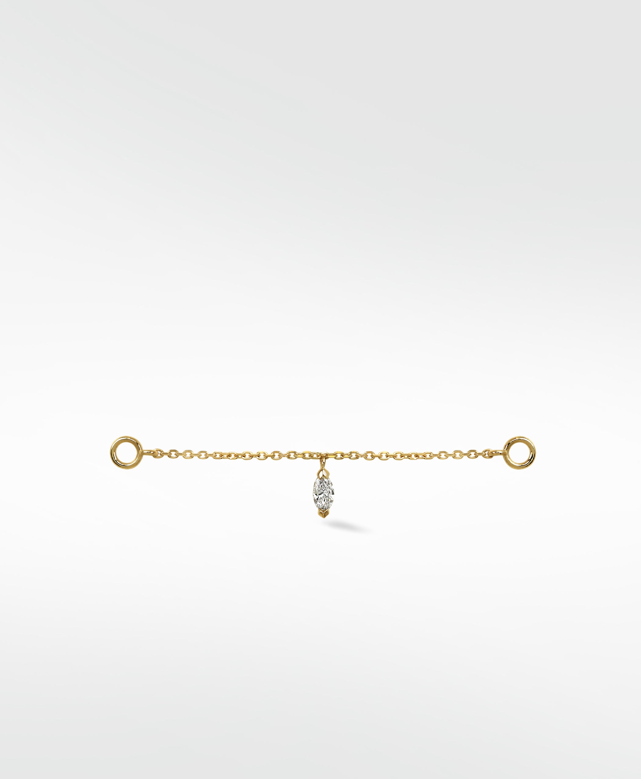 Sleek and refined, the Marquise Diamond Drop Chain connects to a stud or hoop with ease. Its marquise diamond moves gently along a delicate chain, offering contemporary elegance that’s perfect for layering or wearing alone, making every moment shine.