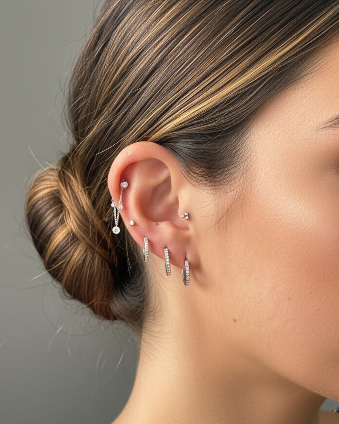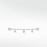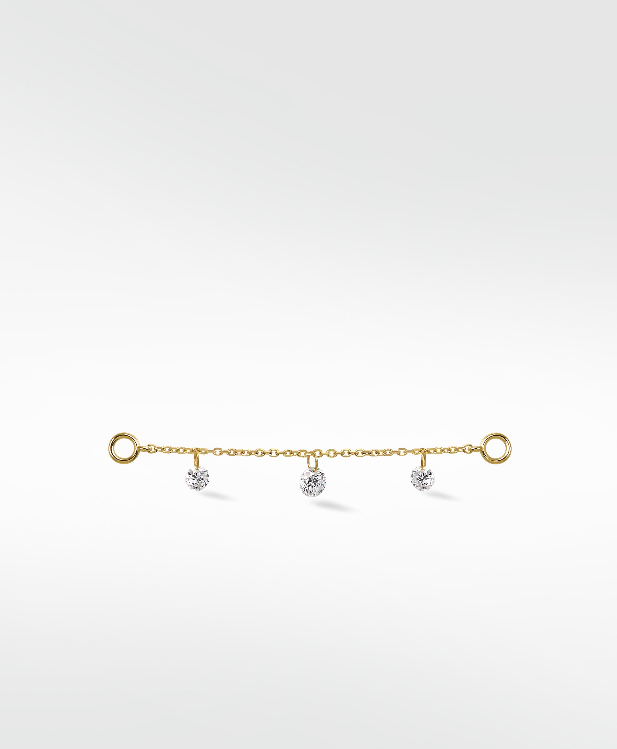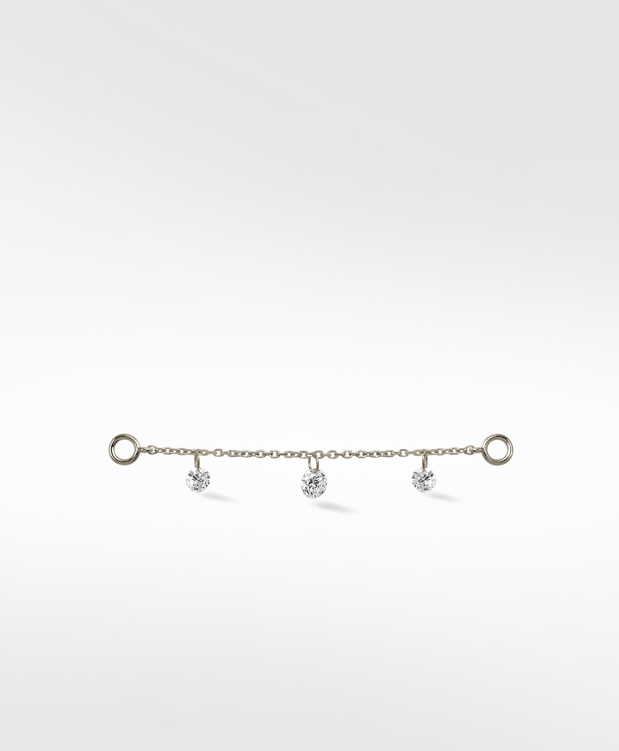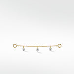 Delicately crafted, this Trio Floating Diamond Chain connects studs or hoops to create a cascading effect that feels light and graceful. Three shimmering diamonds dance with every movement, adding a touch of romance and timeless elegance to any look, day or night.