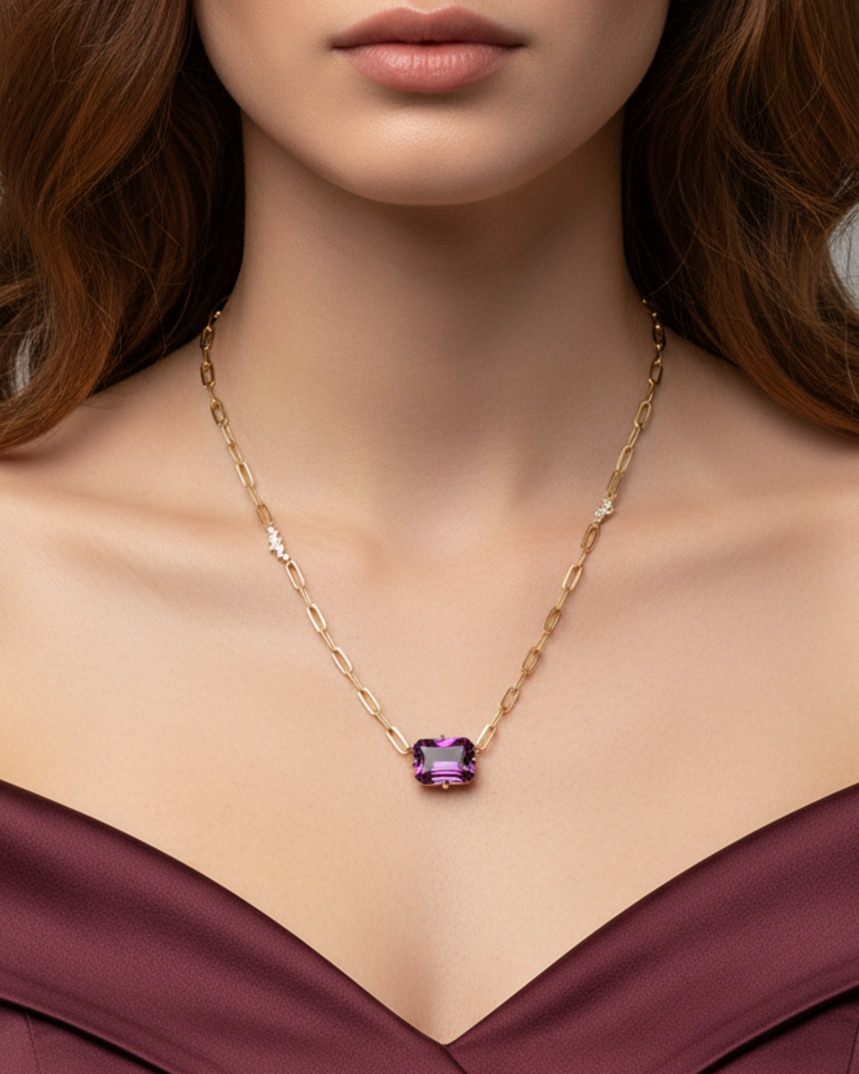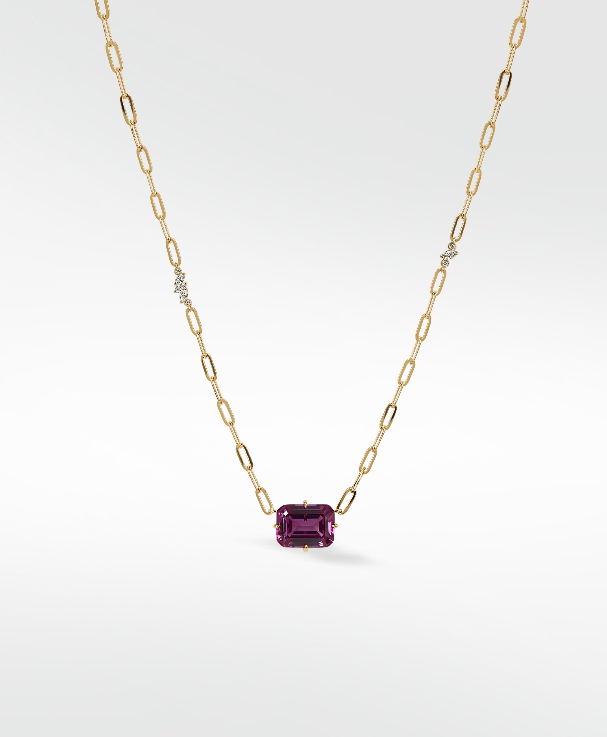 Crafted in 14k gold, this Veto Ignis Violet Statement Necklace features a bold paperclip chain, perfect for everyday elegance or making a standout impression on special occasions.